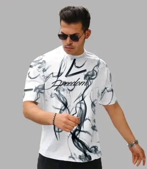 Name : Men's Oversized Smoke Print T-Shirt – Trendy Graphic Tee with 'Freedom' Lettering, Stylish Streetwear Fashion, Casual Wear for Everyday Comfort, Soft Breathable Fabric, Hip-Hop Inspired Design
